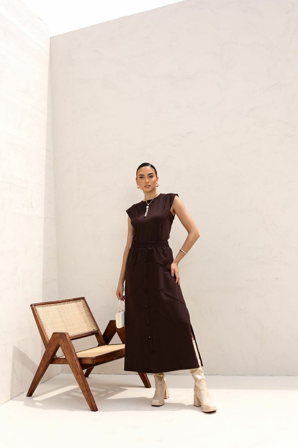 ✔ Saia Midi: Saia midi com botões na parte da frente que vão de uma ponta a outra, até a barra, criando um efeito visual moderno e cheio de charme. Possui também uma pequena fenda lateral, trazendo um toque de sensualidade discreta.